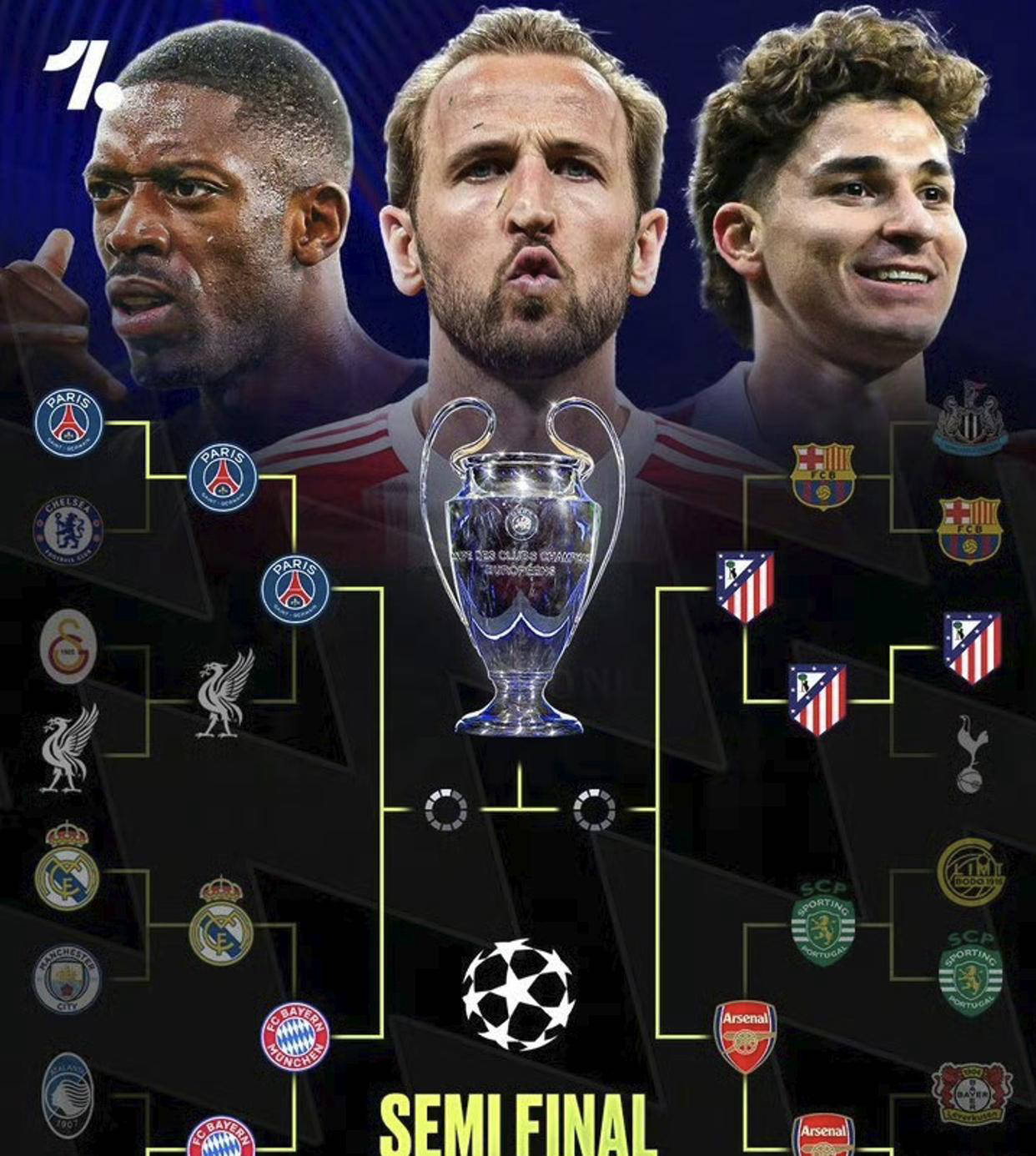 4月16日,北京时间,欧冠四分之一决赛落下帷幕。在安联球场进行的第二回合较量中,拜仁慕尼黑以4-3逆转皇家马德里,凭借首回合的2-1胜利,拜仁成功双杀皇马,晋级半决赛。与此同时,阿森纳在主场以0-0战平葡萄牙体育,但由于哈弗茨在客场的关键进球,以1-0淘汰对手,顺利晋级。现如今,欧冠四强已经出炉:拜仁将对阵巴黎,阿森纳则与马德里竞技交锋,预计这两队会在决赛相遇。